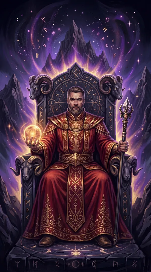 Aries. Cardinal fire. Authority, command, and the drive to build order.